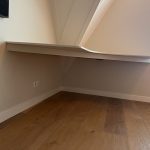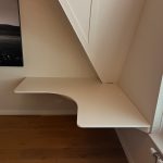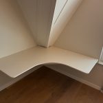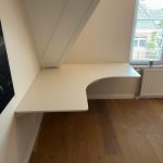 Voor een kinderkamer heb ik een hoekbureau ontworpen. Deze oogt zwevend en is ook zo ontworpen zodat aan beide kanten van het bureau gezeten kan worden zonder tegen een ondersteunende paal aan te komen. Met de diepte is ook rekening gehouden voor een make-up tafel of computer.